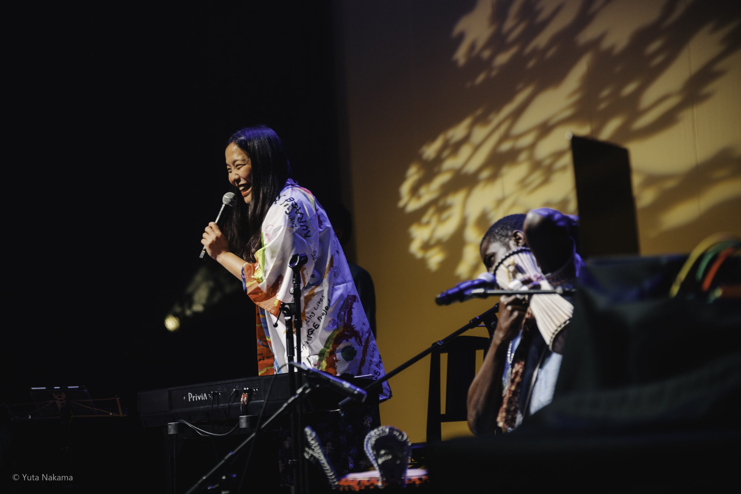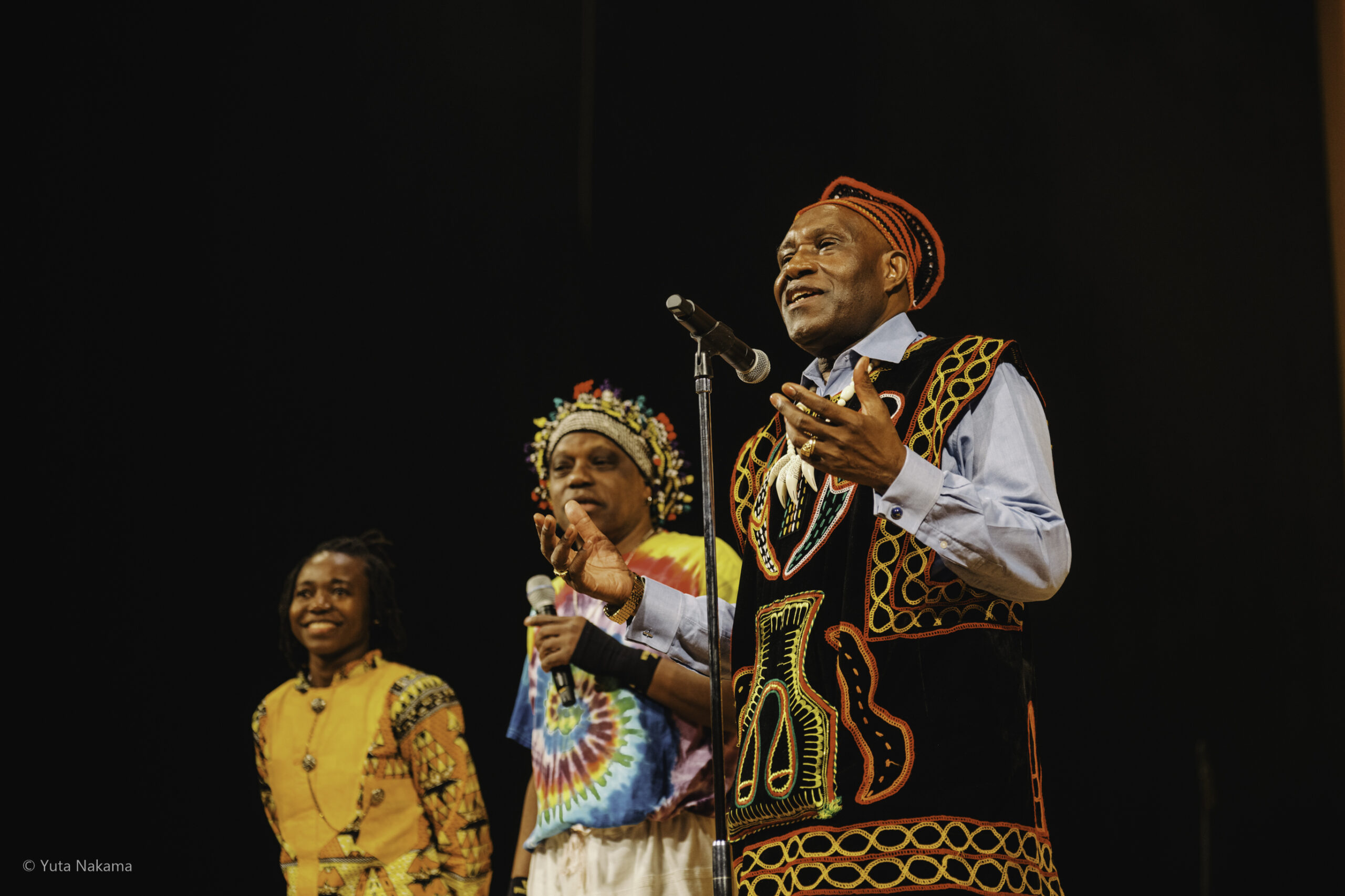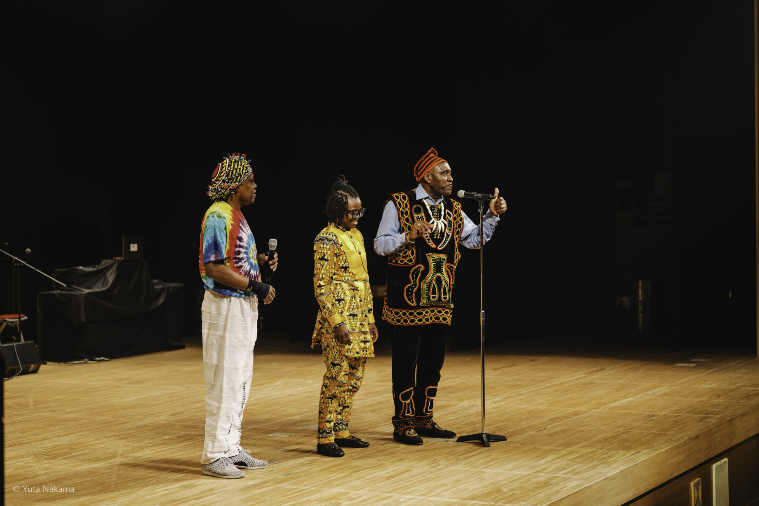 宜野座村は、2025年日本国際博覧会(関西・大阪万博)の国際交流プログラムとして、カメルーンのバカ族と文化交流を予定しており、本交流コンサートは、その「プレ交流」として、ゼンゲ駐日カメルーン大使とワッシー音楽大使をお招きして行いました。