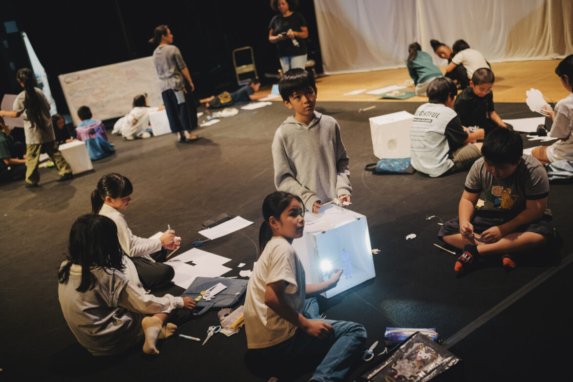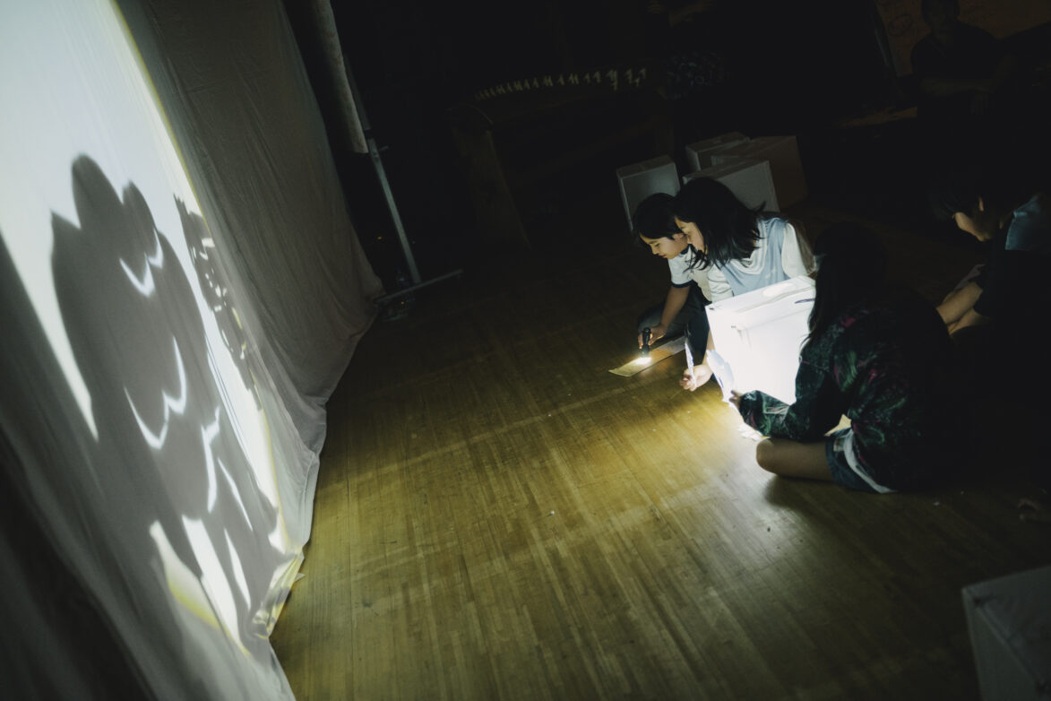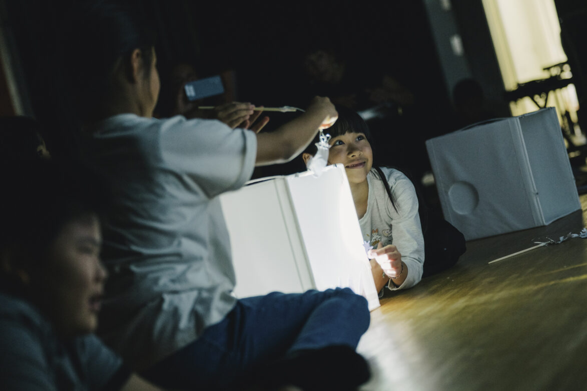 最後は、みんなで小さな発表会。光の前で影をそっと動かしながら、自分の想像した世界をクラスの仲間に届けるひとときは、とてもあたたかく、互いのアイデアを大切にし合う時間となりました。