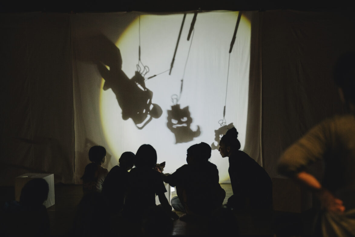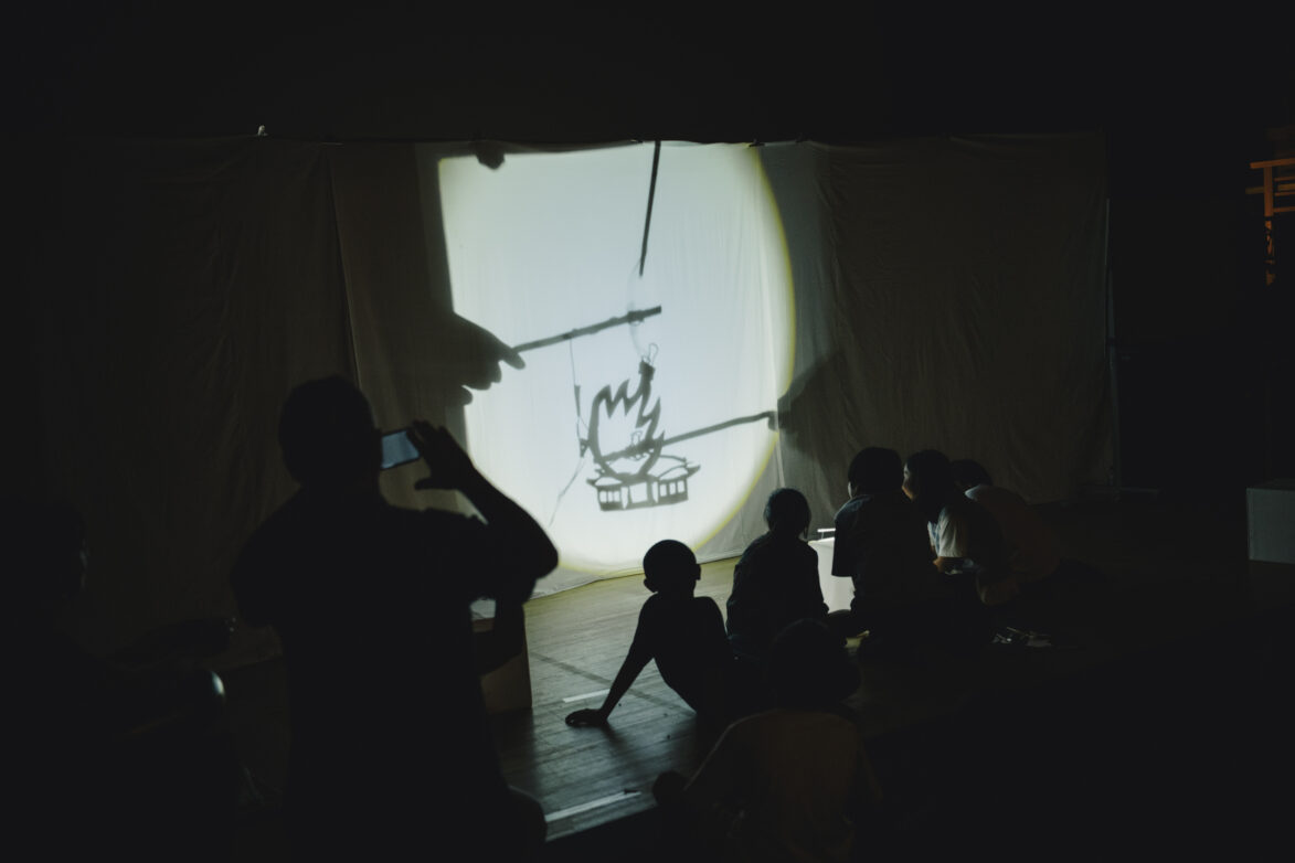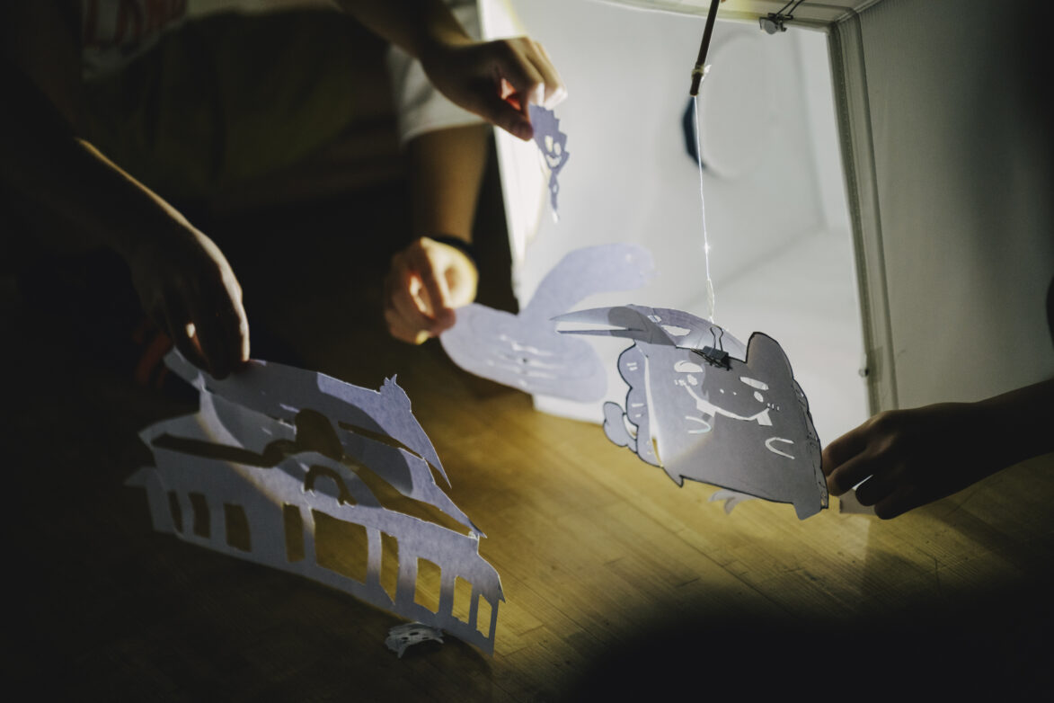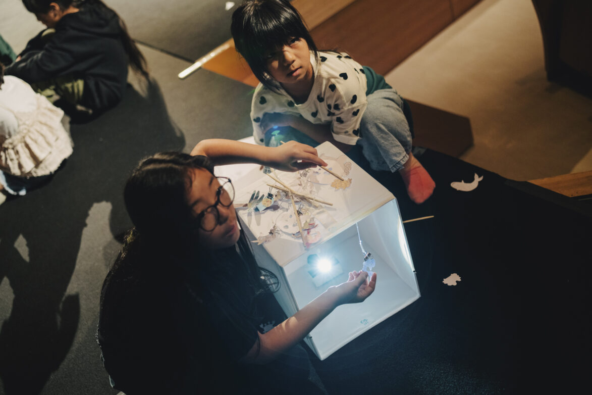 光にかざすたびに影が浮かび上がり、自分のつくった形が「物語の一部」になっていく感覚を、子どもたちは楽しんでいました。